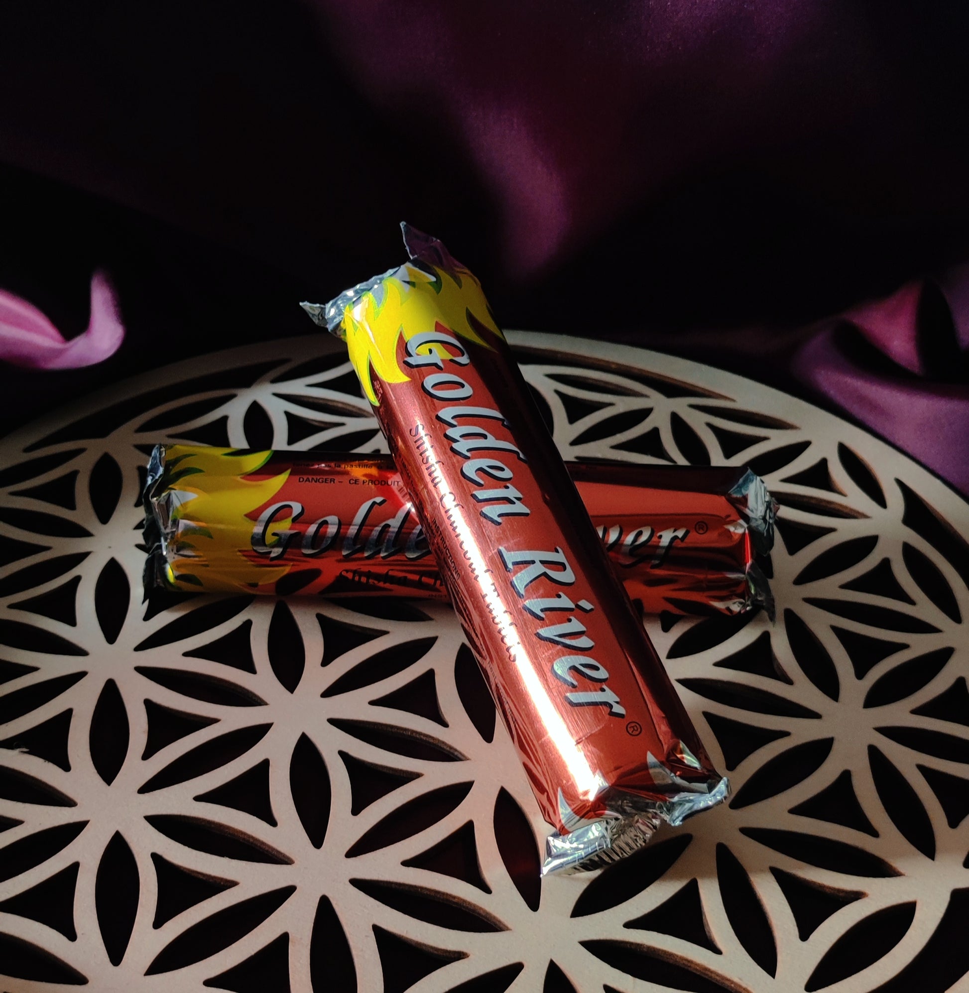 Charbon Golden River, allumage rapide, haute qualité et longue durée. Idéal pour brûler de l'encens. Un indispensable pour vos rituels.Â