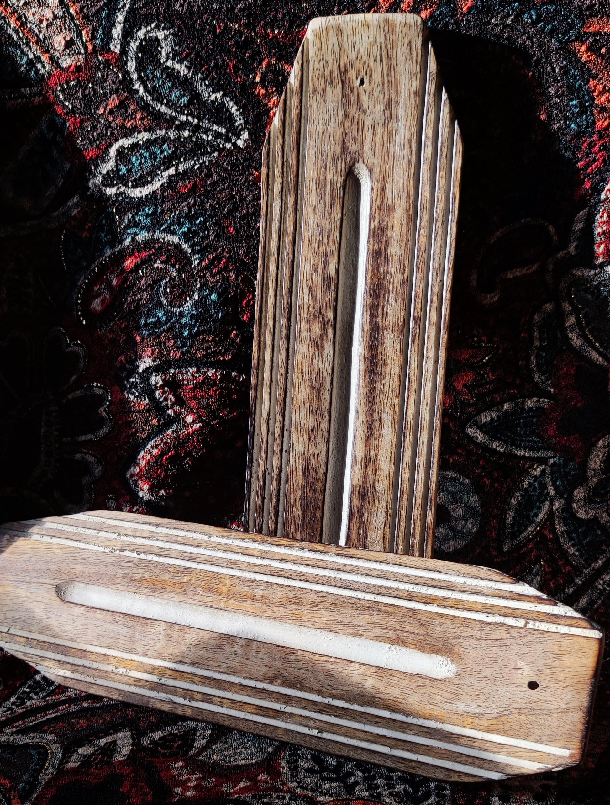 Porte-encens en bois naturel, ornĂ© de lignes blanches sur les extrĂ©mitĂ©s Â