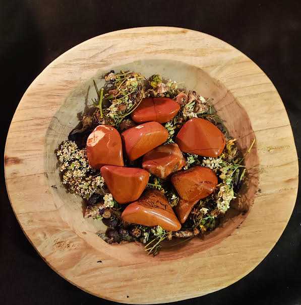 Pierre roulée de Jaspe rouge. Chaque pierre a une taille et une forme unique et variée.