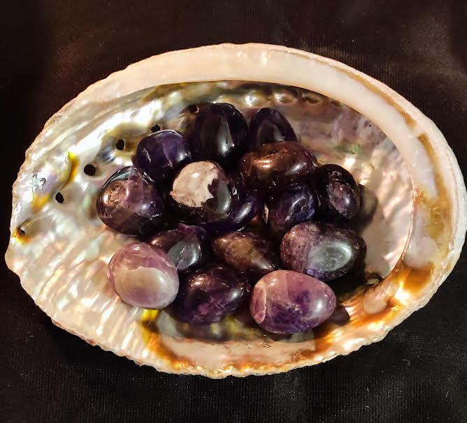 Pierre roulée en Améthyste. Chaque pierre a une taille et une forme unique et variée.